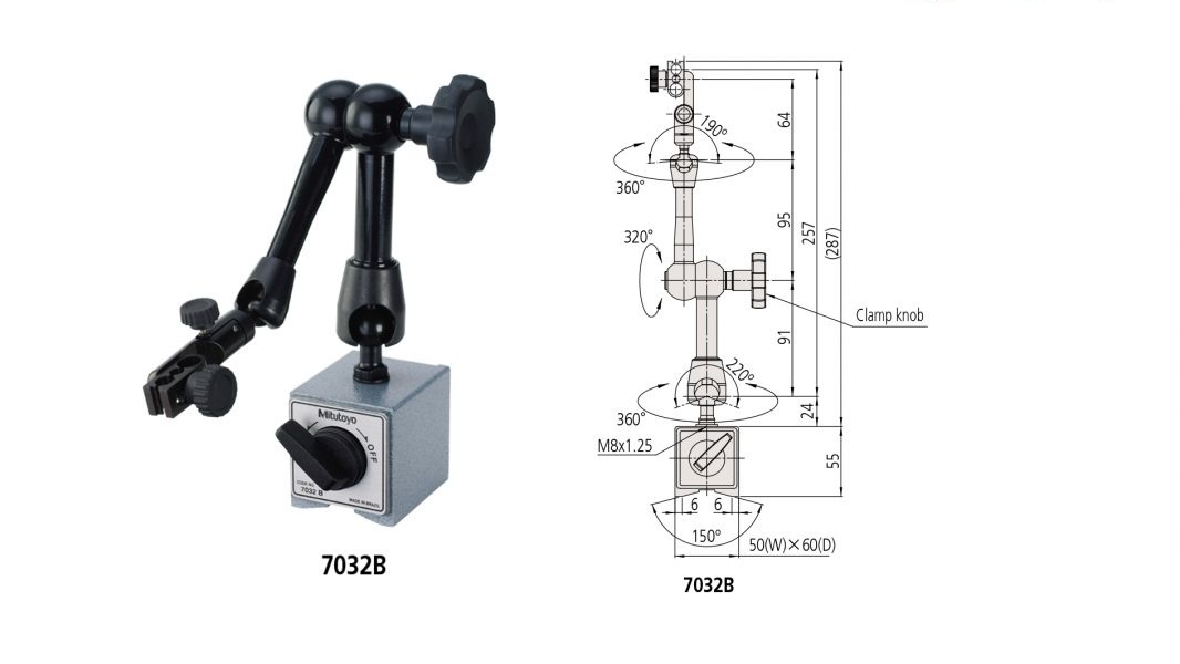 - Bề mặt của đế từ gắn đồng hồ so 7032B được làm phẳng đạt độ chính xác cao.