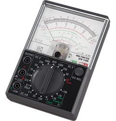 - AC V : 10/50/250/1000V (9kΩ/V) DC A : 50µA/2.5/25/250mA