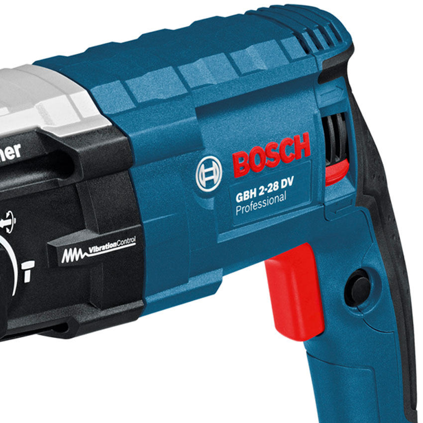 - Bosch GBH 2-28 DV có lực đập tối đa 3.2J và tốc độ đập 4000L/P, giúp khoan nhanh hơn và có thể khoan lỗ sâu trên bê tông và các vật liệu cứng.