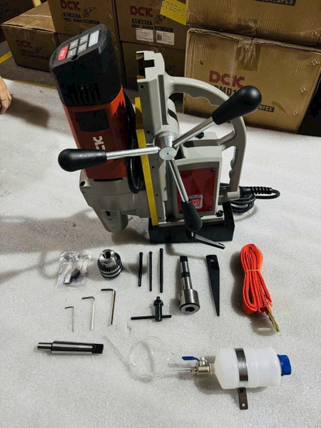Máy khoan từ DCK - KJC02-23 1600W hay còn gọi là máy khoan đế từ, sản phẩm đến từ thương hiệu DCK cao cấp nổi tiếng với các dòng dụng cụ chất lượng. Máy được thiết kế chuyên dụng cho việc khoan lỗ trên các bề mặt kim loại, gỗ, gang, thép,... một cách nhanh chóng và chính xác nhất.