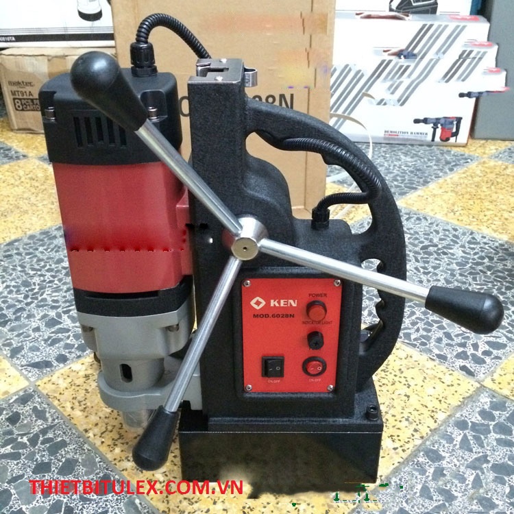 Máy Khoan Từ Ken 6028N dùng để khoan cắt trên một mặt phẳng hoặc đường ống kim loại một cách nhanh chóng và chính xác nhất, máy thiết kế chân đế từ với lực hút cực mạnh giúp máy cố định tại một điểm vững trãi để khoan .