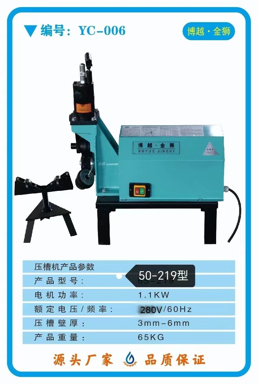 Máy lăn rãnh ống YC-006 cho phép gia công được trên các ống thép có độ dày tới 6mm. Đường kính ống có thể lăn ép ranh và ru ống từ phi 50mm đến 219mm (tức là khoảng 2″~8″). Máy lăn rãnh ống YC-006 sử dụng điện áp 220V 1 pha với motor truyền động công suất 1.1KW. Cho khả năng làm việc rất tốt và rất êm, độ ồn thấp.