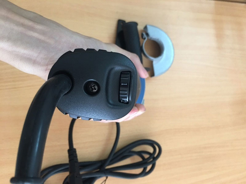 Máy mài góc DongCheng DSM10-100 có công tắc bên hông, đuôi máy có núm vặn tùy chỉnh tốc độ mài ở 4 mức nên được người dùng ưa chuộng.