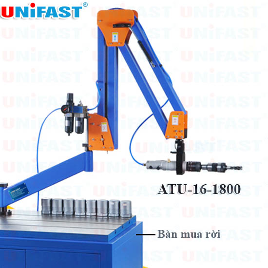 ATU-16-1800 là model máy ta rô cần khí nén loại đứng ngang thương hiệu Unifast, cung cấp khả năng ta rô được từ M3 đến M16, làm việc được trên phạm vi 1800mm. Đầu ta rô của ATU-16-1800 xuay được 90 độ để ta rô đứng hoặc ta rô ngang