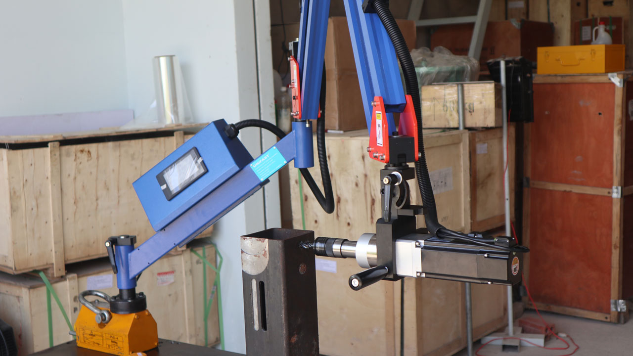 Thiết kế dạng cần với 3 cách tay đòn cho phép đầu ta rô làm việc ở phạm vi rộng tới 1800mm