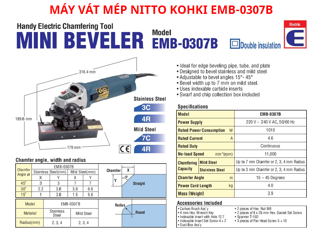 - Vát chiều rộng lên đến 7 mm trên thép nhẹ.