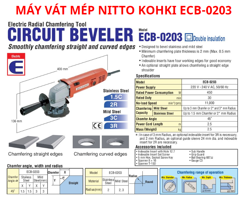 - Được thiết kế để vát thép không gỉ và thép nhẹ