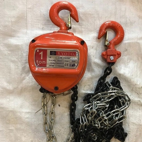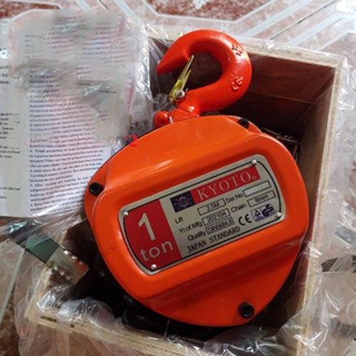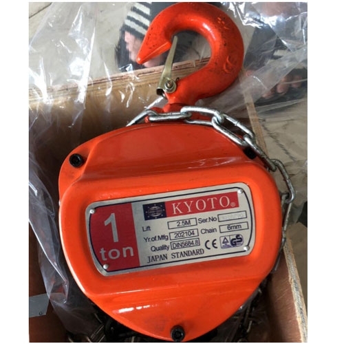 Pa lăng xích kéo tay Kyoto 1 Tấn 4M là thiết bị nâng hạ cơ khí thiết kế gọn nhẹ, dùng xích kéo tay để nâng, kéo và hạ các vật nặng trong nhà xưởng, công trình xây dựng hay kho bãi. Với tải trọng tối đa 1 tấn và chiều cao nâng 4 mét, sản phẩm phù hợp với các công việc nâng hạ trung bình đến nặng mà không cần nguồn điện.