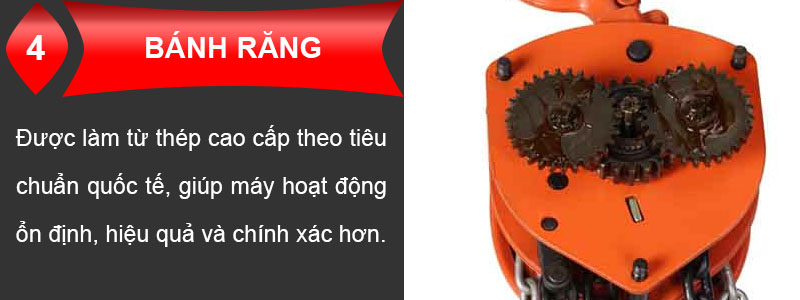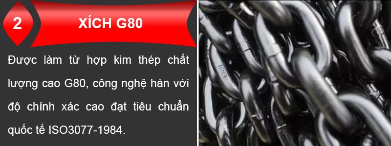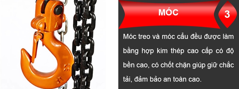 - Pa lăng xích được trang bị hệ thống chốt kép nhằm tăng cường an toàn cho người sử dụng.