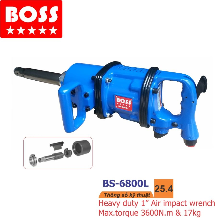 Súng vặn bulong tắc kê hơi, Súng tháo xiết bu lông tích kê hơi, Máy xiết mở ốc bu lông hơi, Súng bắn tháo mở ốc bu lông, Súng bắn tắc kê, Súng bắn tích kê mở ốc hơi, Dụng cụ khí nén... BS-6800L hiệu BOSS
